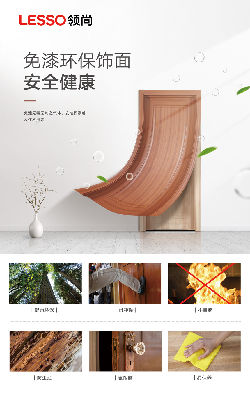 LESSO領尚木門始終秉承高標準、高品質的原則,不斷探索和實踐,創造出符合當地市場需求、契合樓盤特色的優質木門。