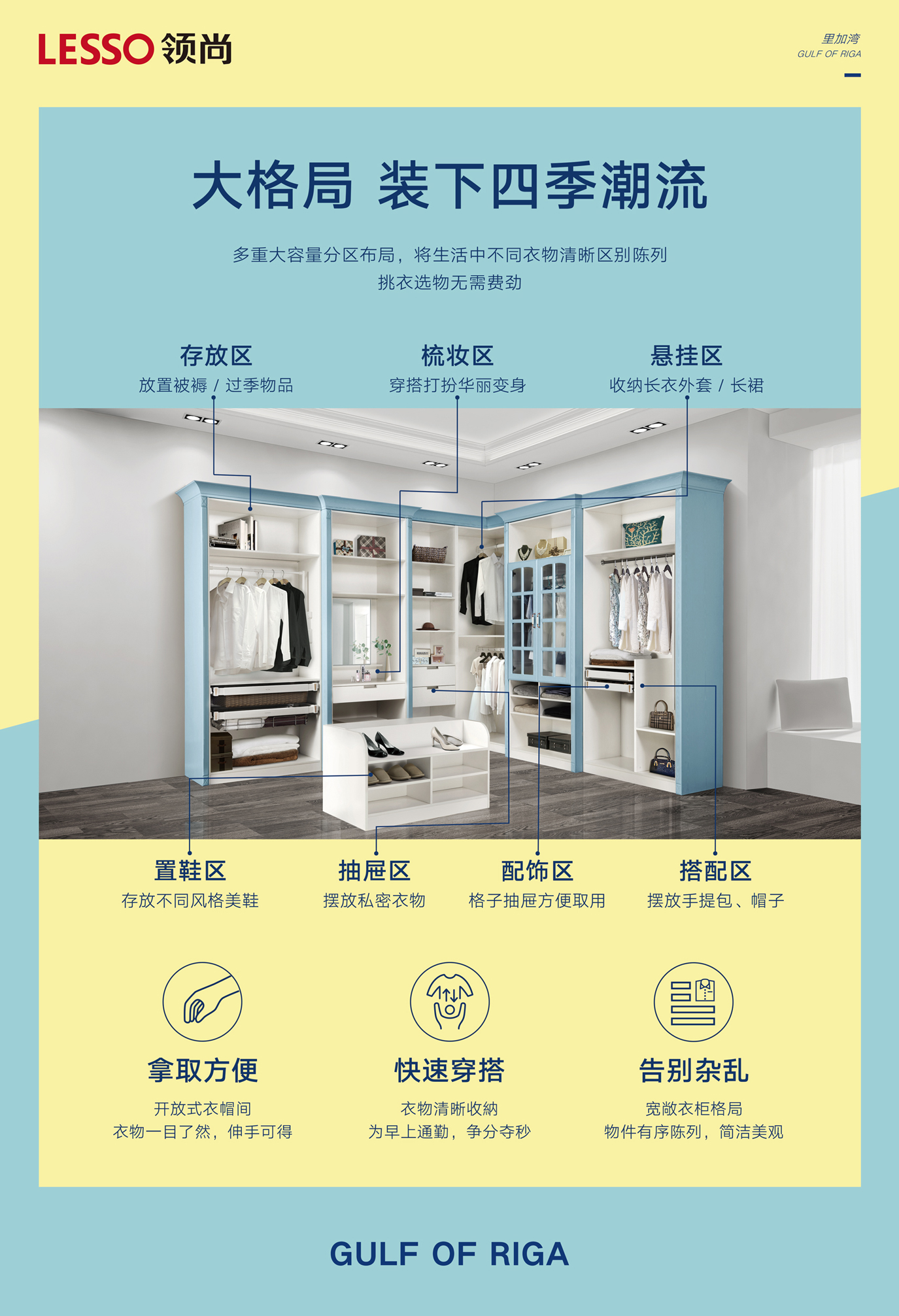 領尚整體衣柜融合人體工程學,進行衣柜空間的優化設計可適合各種家居裝修風格,讓你家居也可以像時尚裝一樣高貴優雅、時尚、品味十足。定制實木衣柜的質量會受很多種因素的影響,因風格的不同,所裝修出來的效果也都是不一樣的。所以在選擇定制衣柜的時候一定要認真考慮仔細分辨和對比。