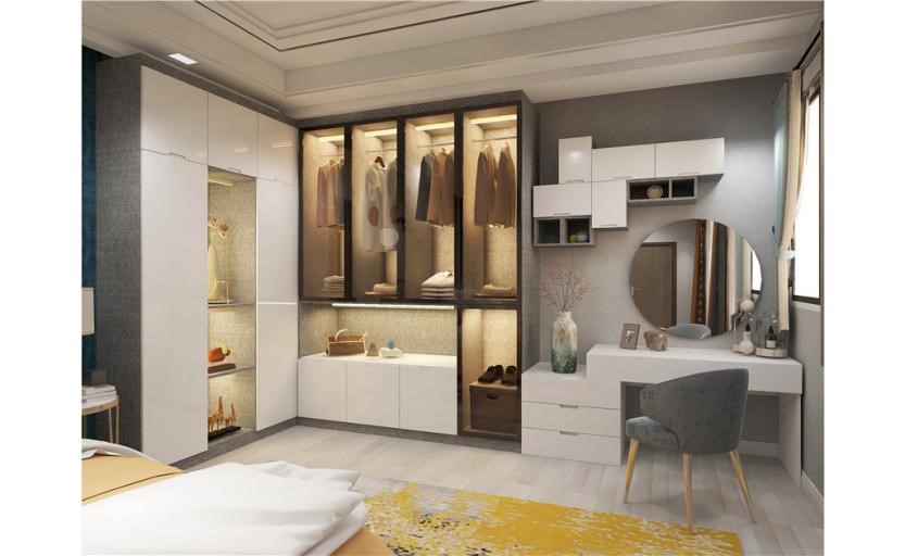 在設計臥室光線時要注意光線不要過強或發白,選用暖色調燈具,鵝黃、乳白色比較適宜,突出整個臥室的溫馨。要注意,梳妝臺的照明在化妝臺兩側裝燈更為明智,光線更自然。常規模式:吸頂燈+局部照明,局部照明可以選擇床頭壁燈或床頭小臺燈,落地燈。無主燈模式:平均布燈+局部照明,將筒燈均勻分布,再通過增加點光源的方式增強空間層次感。