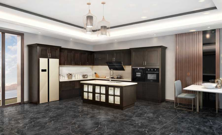 實木類的整體櫥柜以實木或實木復合做門板定制而成,不僅外觀上高檔美觀、紋路自然,最重要的是質輕而硬、堅固耐用、環保無污染。隨著工藝的進步,如今的實木櫥柜的紋理更加細膩,顏色也更加均勻。領尚實木系列設計風格多樣,整體簡約而端莊,給人以沉穩與古典的質感。