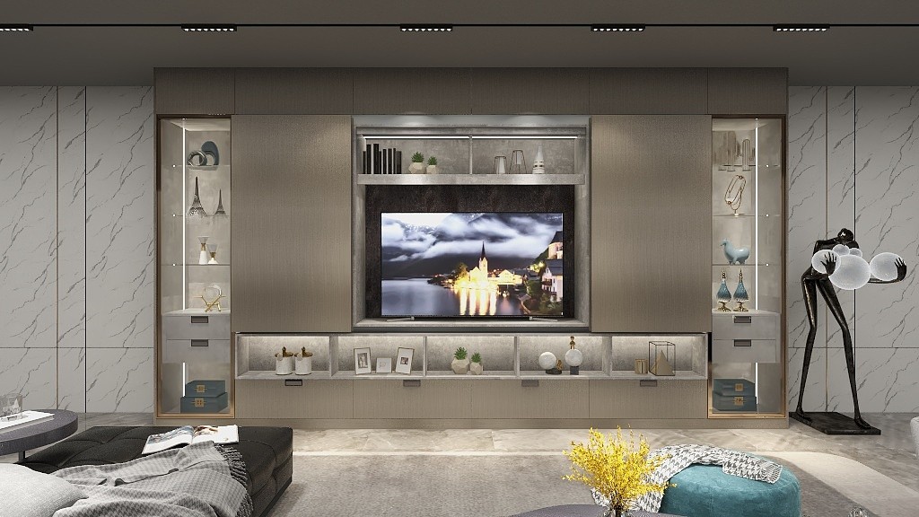 領尚多功能墻面臥室電視柜——通過移動層板、側(cè)板、柜子靈活組合,滿足收納、展示、裝飾等多種需求。