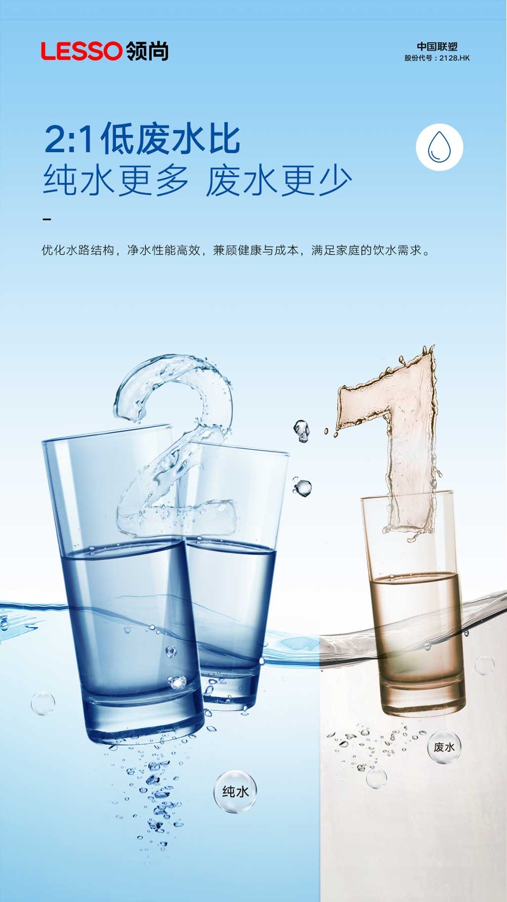 擁有如此優秀的凈水配置,領尚反滲透凈水機的凈水效果自是不必多說。領尚反滲透純凈水機具備優秀的水路結構,凈水性能高效,能夠達到2:1的低廢水比,完美實現了純水更多,廢水更少。兼顧了健康與成本,能夠很好的滿足家庭飲水需求。