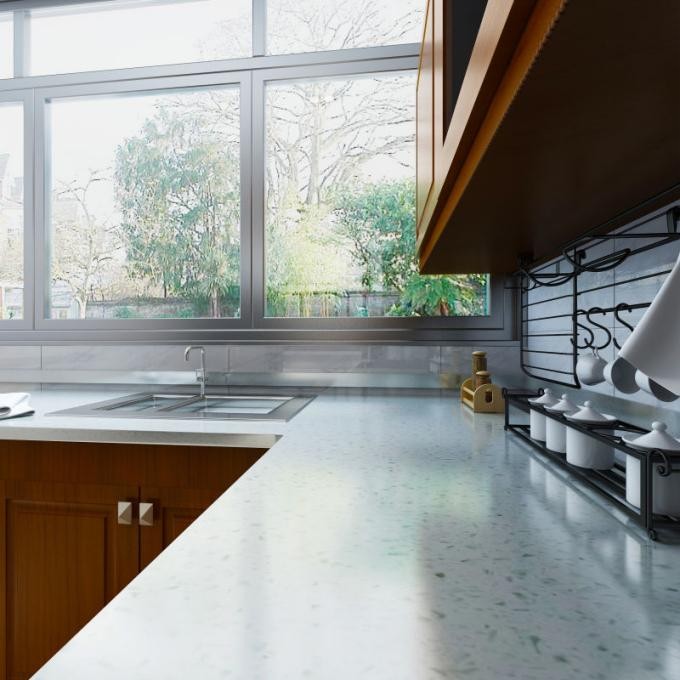領尚石英石硬度高,具有良好的抗腐蝕能力,其作為廚房臺面不會被日常生活中的油污、液體物質腐蝕內部。