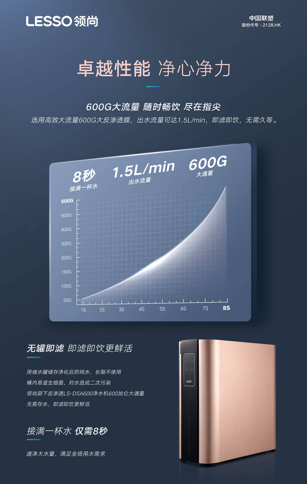 ②600G大流量,即濾即飲