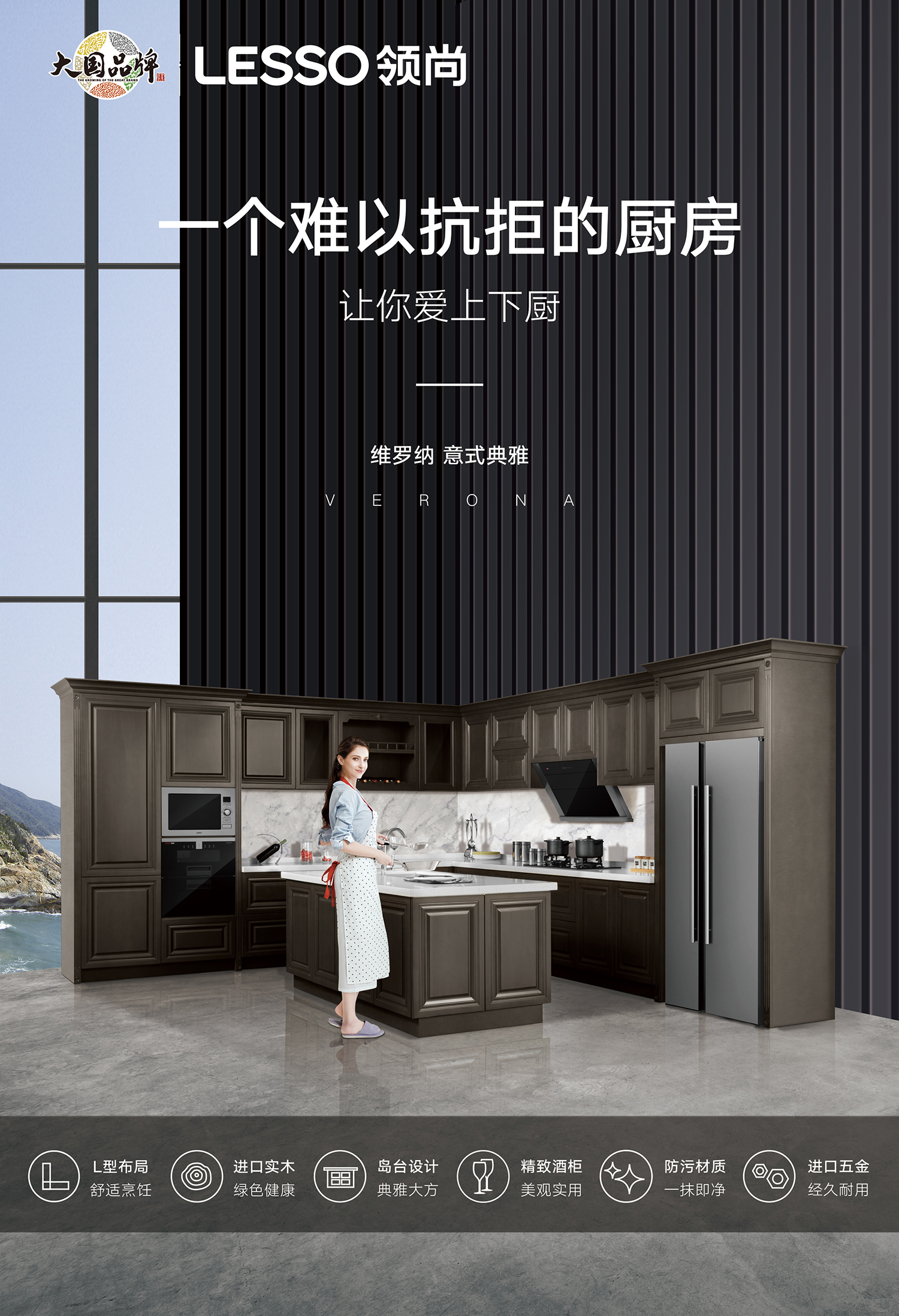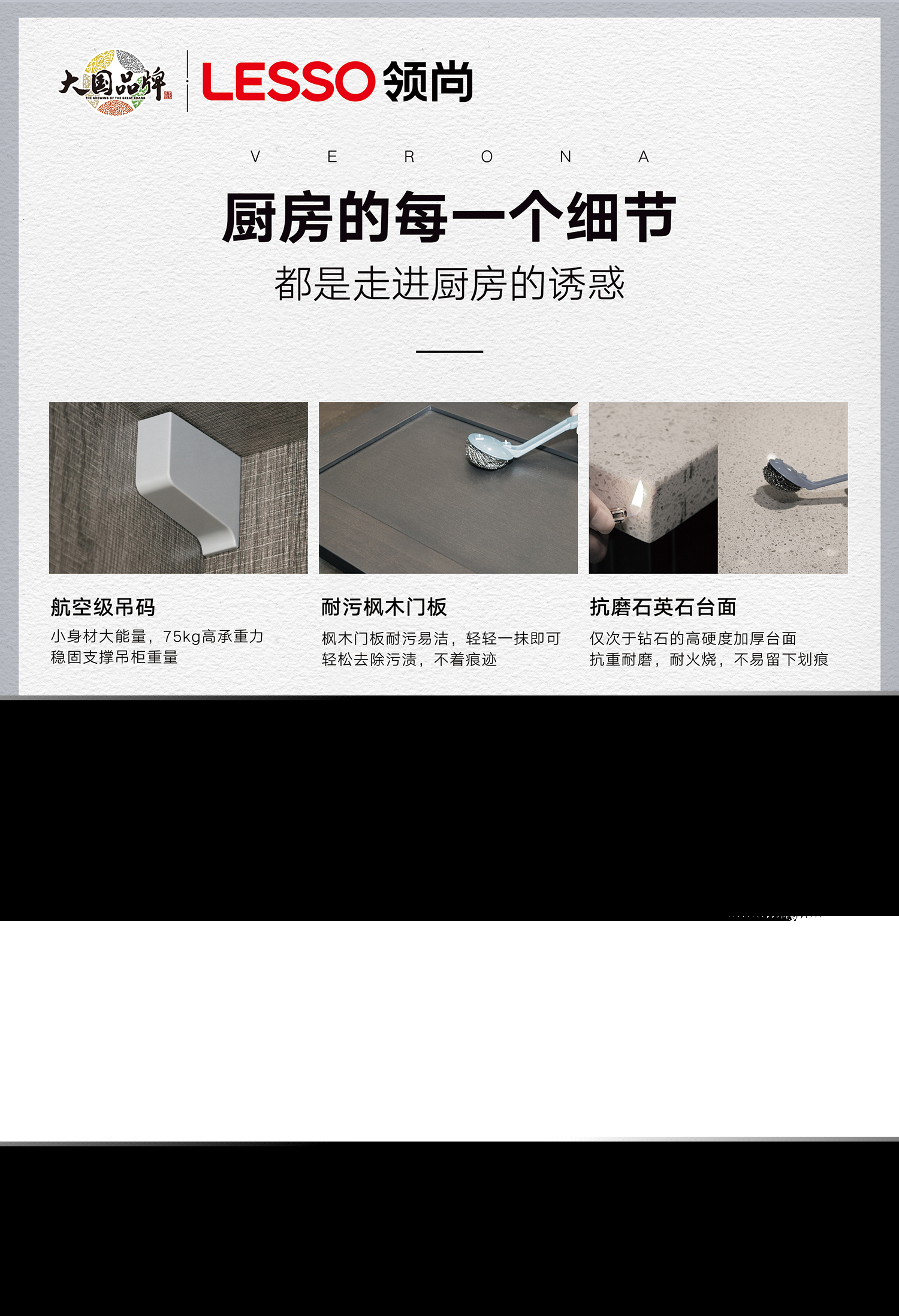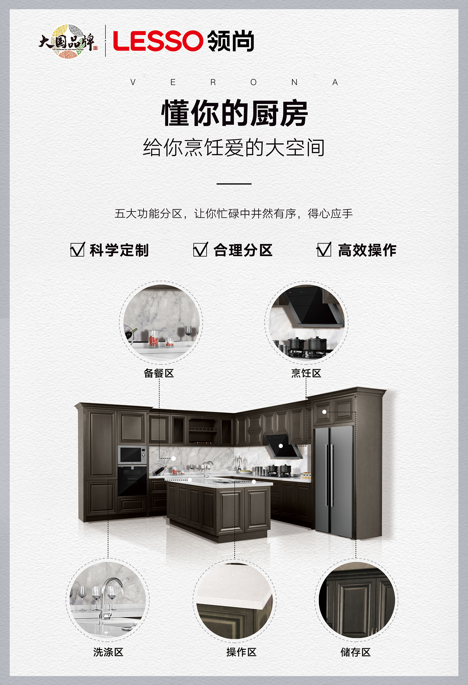 2、L型的設(shè)計加上中島臺,提供了更寬敞的操作空間,內(nèi)嵌式的廚電使得廚房空間整體更顯整潔,產(chǎn)品整體感更強(qiáng);