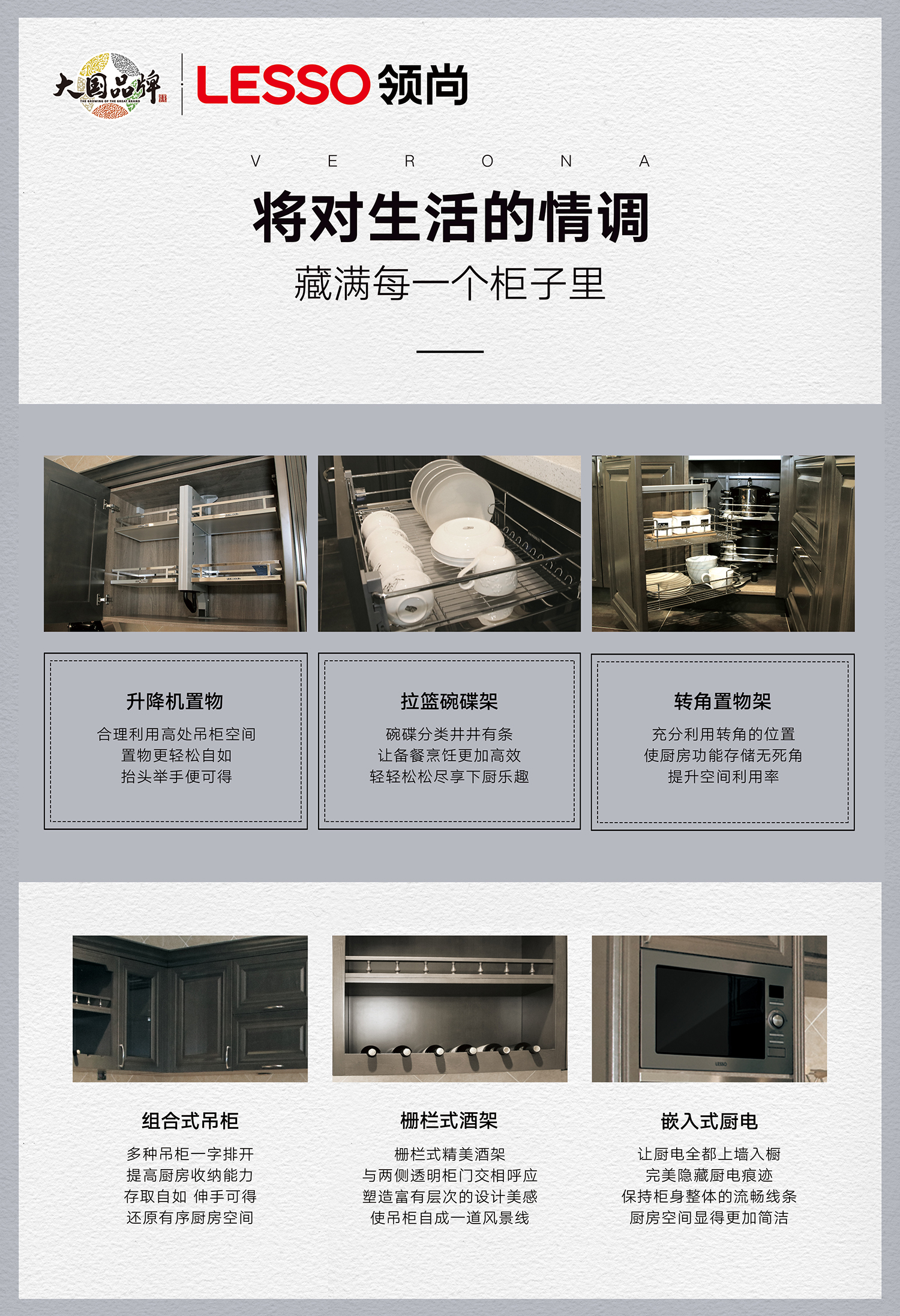 3、吊柜配置精致酒架,結(jié)合兩側(cè)透明材質(zhì)的吊柜柜門,作為整體產(chǎn)品的點綴,為櫥柜整體增加設(shè)計感。