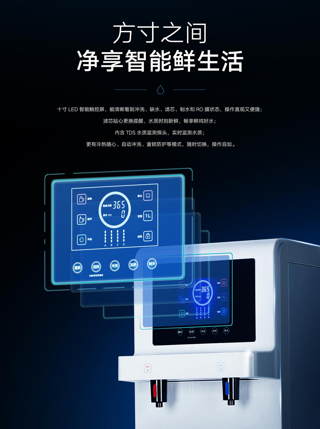 過(guò)濾工藝:PP棉濾芯+活性炭濾芯+50GRO反滲透膜濾芯+后置活性炭濾芯