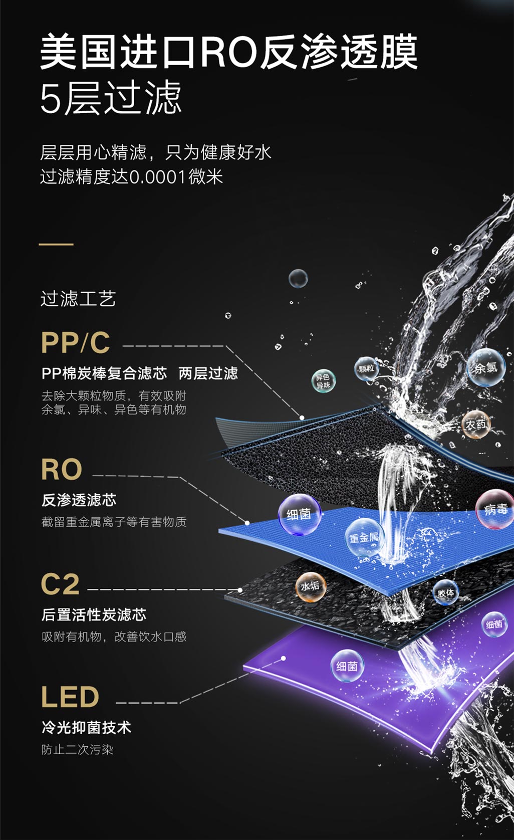 即濾即飲 5層深度過(guò)濾 進(jìn)口RO反滲透膜